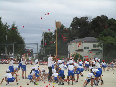 低学年は、音楽に合わせてかわいらしいダンスをしながらの玉入れ、中・高学年は真剣勝負での玉入れとなります。