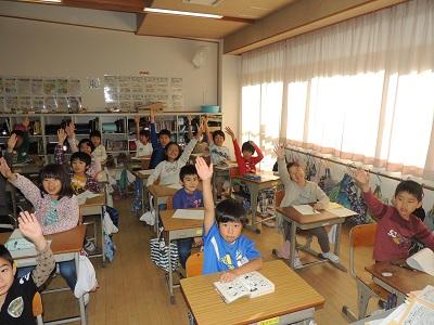 先生が来る前に、聞きました。「元気な人?」「はーい!」元気が一番ですね。