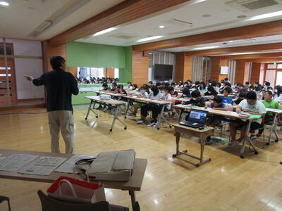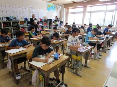 途中休憩をはさみながら約80分間、たっぷり時間をとって大変貴重なお話をしていただきました。とても分かりやすい内容で、お話も面白かったので、子どもたちもメモをたくさん取りながら、真剣に集中しながら授業に参加していました。