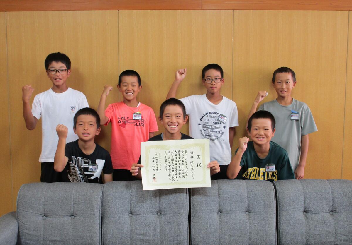 このたび、チームを代表して5年生7名が校長室に優勝報告に訪れました。