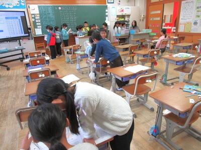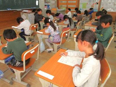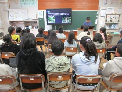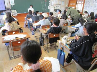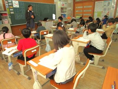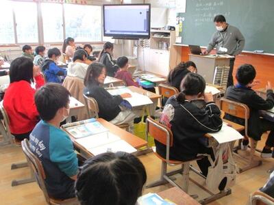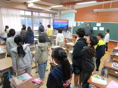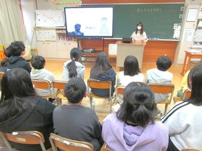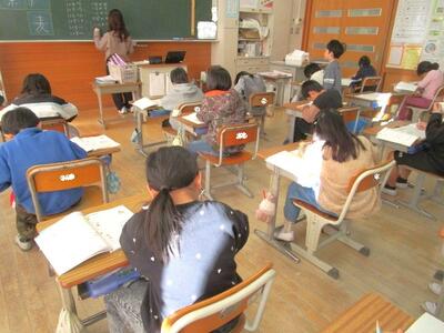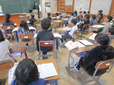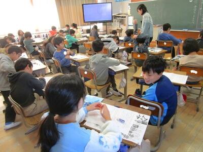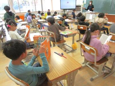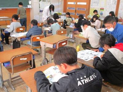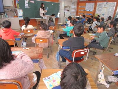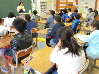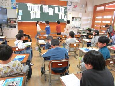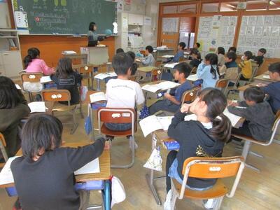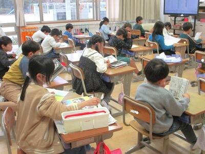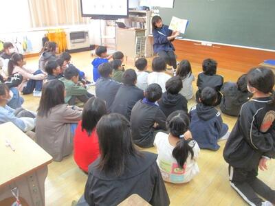 【5年生】1枚目の写真は、「人権週間」に係る活動を行っています。人権に関する本を読み聞かせしているのです。子どもたちは、いつもの授業とはちがう雰囲気で聞き入っていました。