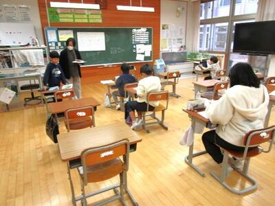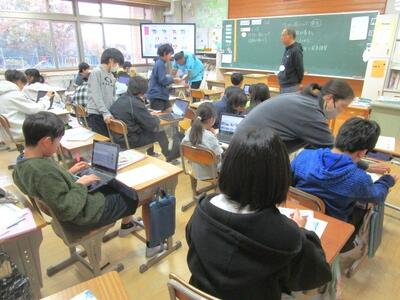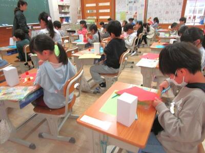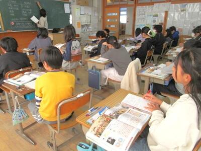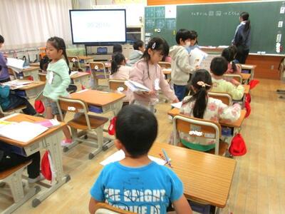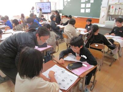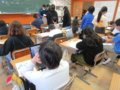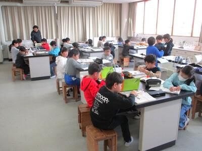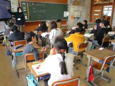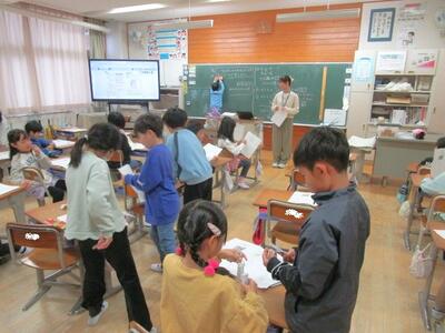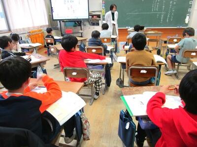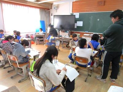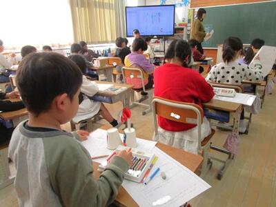 【2年生】1枚目の写真を見ると先生がたくさんいますね。実は、インフルエンザ蔓延防止のための休業の時に行う予定だった研究授業を行っています。子どもたちも真剣に学んでいますね。