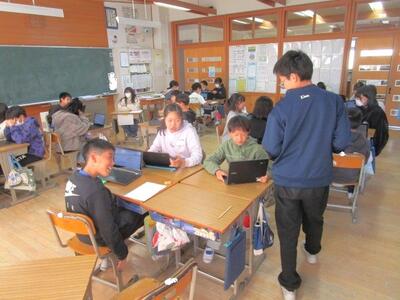 【6年生】1枚目の写真は、総合的な学習の時間の様子です。5年生に古都鎌倉を伝えるのに、2つの教室に分かれて発表を行いました。よくまとまった発表でした。