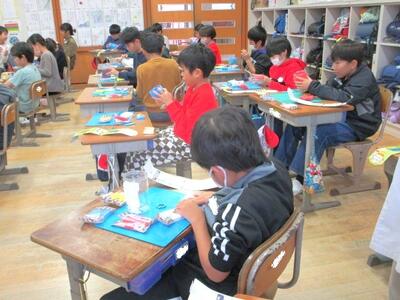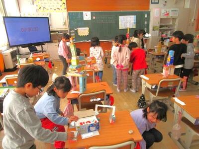【3年生】1枚目の写真は、図画工作の「空きようきのへんしん」の学習の様子です。ペットボトルの容器に紙粘土を貼って、素敵な作品に仕上げていきます。どんな作品が出来上がるか楽しみですね。