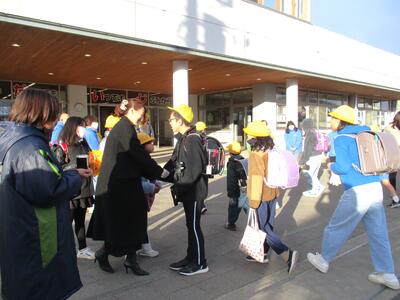 本日からの人権週間に伴い、あいさつ運動が始まりました。今日は、民生児童委員の皆様や町生涯学習課、高根沢第二幼稚園の先生やPTA会長さんなど、たくさんの方が参加してくださいました。