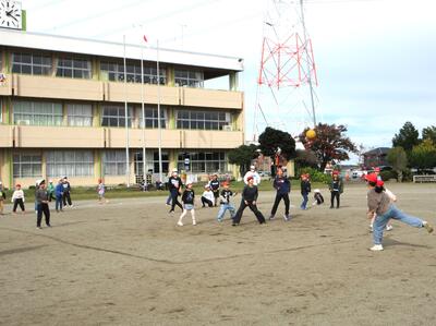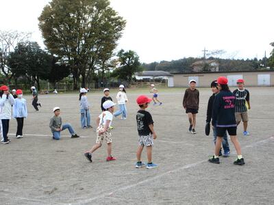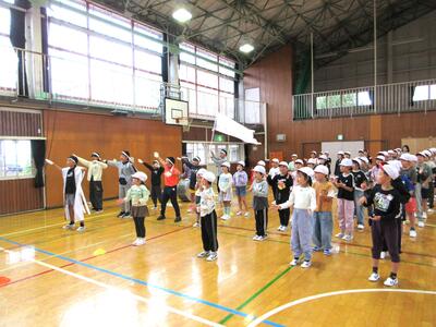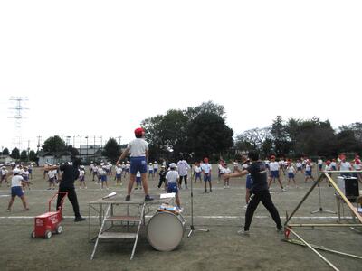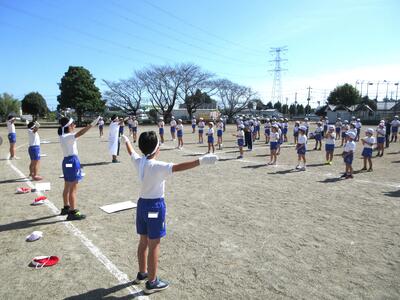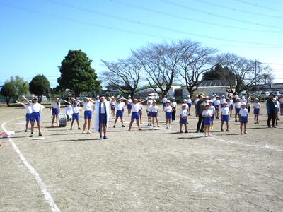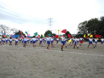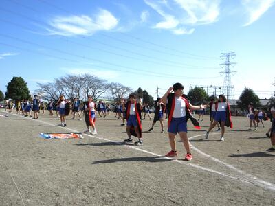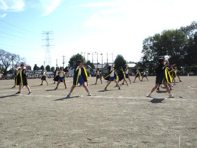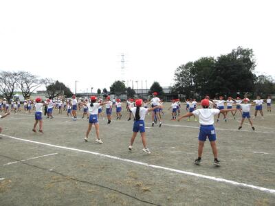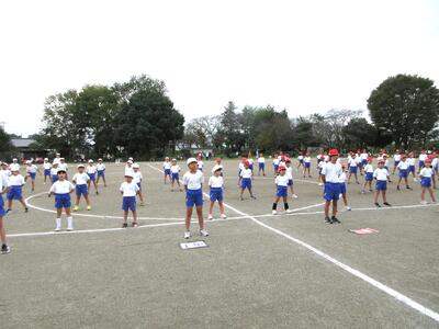 秋晴れのもと、3校時に全校生で運動会の練習を行いました。