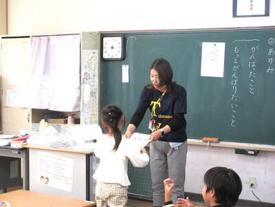 学級活動では、担任が温かい励ましの言葉を伝えながら、通知表を手渡しました。