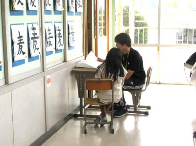 1年生の国語では、漢字の学習です。漢字の読み方や筆順をドリルを使って確認しています。