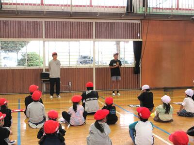 練習の始めに、赤組と白組の応援団長さんが、全校生に応援のポイントを伝えました。