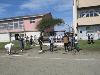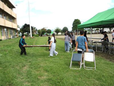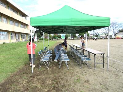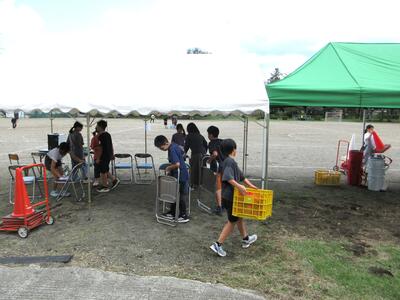 5年生と6年生が運動会の準備を行いました。どの児童も一生懸命に自分の分担の仕事に取り組みました。