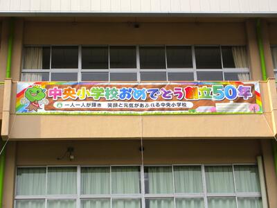 来年で本校は、創立50年目を迎えます。歴史を刻んできた節目を祝い、記念の横断幕を初披露しました。
