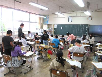子どもたちがナップザックやトートバッグを縫う際の、ミシン操作の補助や安全見守り等の御協力をいただきました。ミシンボランティアの皆さん、ありがとうございました。