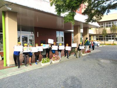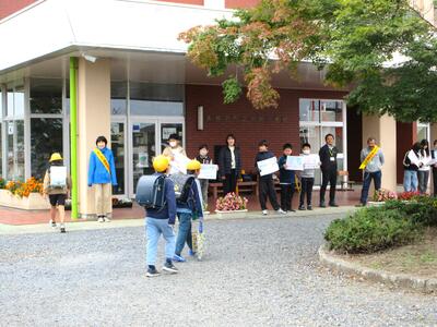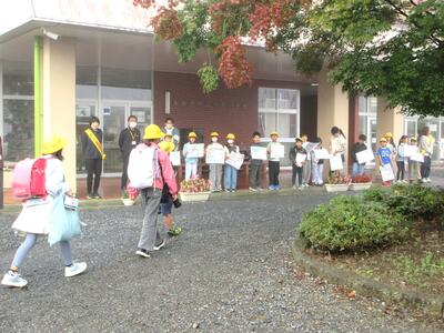 児童会で企画している中央小学校の「あいさつ運動」。10月は、今日から一週間実施します。