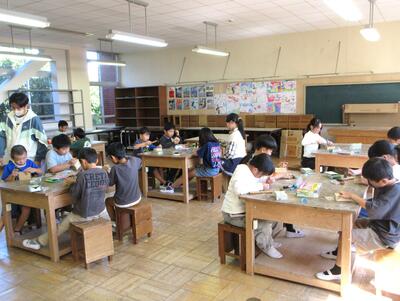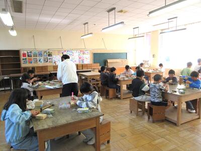 4年生の図工「ギコギコトントン クリエーター」の授業に、図工ボランティアの方が御協力くださいました。