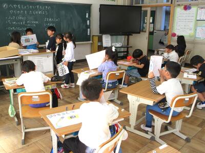 1年生の生活科では、保育園との交流会に向けて話し合っています。