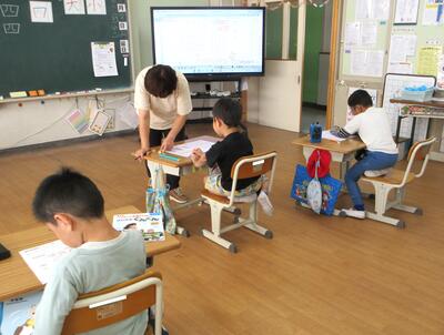 2組では、学年ごとに国語の学習にじっくり取り組んでいます。