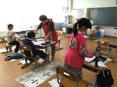 2年生の書写では、とめやはらい、はねに気を付けて書いています。