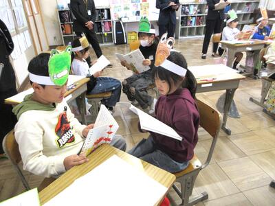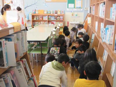 なかよしタイムに、図書委員会の児童が各教室で本の読み聞かせを行いました。