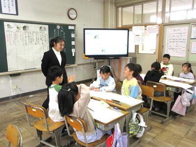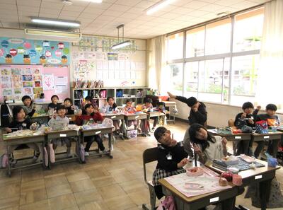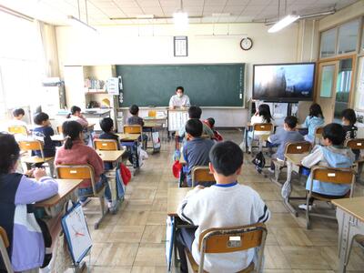 2年生の国語では、既習の単元「どうぶつえんのじゅうい」との関連で、地域の獣医さんを講師にお招きしてお話をしていただきました。獣医としての仕事のことや、命の大切さについてなど、子どもたちに分かりやすくお話しくださいました。お忙しい中、ありがとうございました。