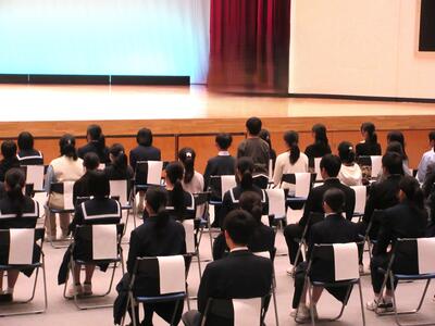 各クラスで話し合って決めた「いじめゼロ宣言」をクラスごとに発表し、学校みんなでいじめをなくすためにどんなことが大切なのかを確認しました。