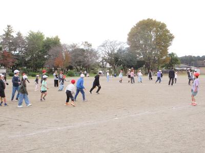 高学年は、前半に走るグループと後半に走るグループに分かれて走りました。低学年は、学年ごとに走りました。