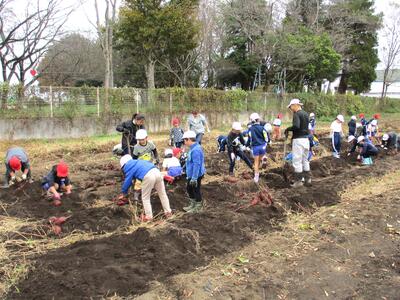 昼休みの後は、縦割り班ごとに分かれて、なかよし花壇にパンジーの苗を植えました。
