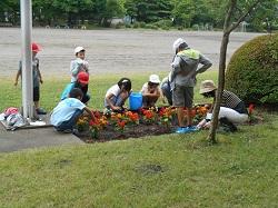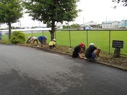 今日は、グリーンタイムがありました。朝から降っていた雨も上がり、子供たちは花壇やフラワーロードの草を一生懸命取っていました。おかげで、花の色が映えて一段ときれいに見えるようになりました。