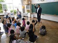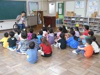 1年生の子供たちは、大塚さんのお話を真剣な表情で聞いていました。