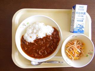 今日の給食は、ごはん、牛乳、カレーコロッケ、なのはなあえ、いなかじるです。高根沢町で生産されたものは、みそ、にんじん、こめです。今日も、たいへんおいしく頂きました。