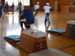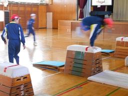 今日の2時間目に、1年生の体育の授業を見てきました。町の器械・器具を使っての運動遊びへ指導補助者を派遣してくれる事業の4回目です。段階的に指導が進められ、今日は「とびばこをとぼう」ということで、最初は横向きで、そして次に跳び箱を縦向きにして跳び越す練習をしていました。この4回で、子どもたちは楽しみながらいろいろな感覚を身に付けてきています。最後の5回目もとても楽しみです。