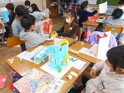 今日の昼休みは、ボランティアの方々を講師に招いての、クリスマスクラフトづくり2が行われました。子どもたちは、講師の方の指導を受け、自分たちでアイデア豊かなクリスマスツリーを作り上げていました。今回は、ボンドで付ける作業があったので、乾かないと落ちてしまうので図書室に保管してあります。明日には持って帰れると思います。御家庭で飾ってあげてください。ボランティアの皆さん、今日もたいへんありがとうございました。