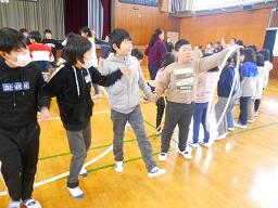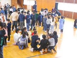 その後フラフープを使った、仲間づくりゲームを実施し集会が終わりました。