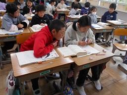 今日の1時間目に、4年生の国語の授業を見てきました。「言葉の意味を考えて正しく漢字を読んだり書いたりできるようになろう」というめあてで、国語辞典を使って、ペア学習を進めていました。全員、協力しながらとても意欲的に漢字調べに取り組んでいました。とても穏やかな雰囲気が、クラスの中にあったのが印象に残りました。