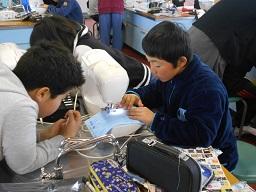 今日の5年生の3、4時間目の家庭科に、ミシンボランティアさん4名が授業に参加しました。下糸を巻くところからスタートして、練習布を縫うところまでの授業でしたが、下糸を巻くところから、あちこちから「先生、先生・・」と助けを求める声がして、子どもたちはたいへん苦労していましたが、ボランティアさんの手を借りながら、練習布を縫うところまでたどり着くことができました。先生1人ではとてもここまで進むことはできなかったと思います。ボランティアのみなさん、本当にありがとうございました。