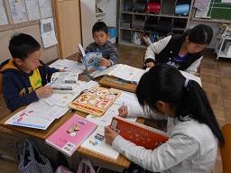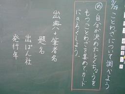 今日の1時間目に、3年生の国語の授業も少し見てきました。先日お知らせした計画のとおり、今日はグループになってことわざを調べ、カードにまとめていました。町の図書館から、ことわざに関する本が30冊借りてきてあったので、子どもたちの学習活動は、とてもスムーズにしかも意欲的に進んでいるように見えました。ここまで準備した、担任の力だと思いました。授業の準備はとても大切だということを、再確認させられる授業でした。
