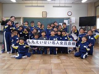 2年生で実施していた、九九えいせい名人挑戦ですが、昨日の昼休みで、全員合格しました。1回で合格する子もいれば、最高7回校長室へ通ってきた子もいます。でも、ゴールはいっしょです。何回挑戦しても合格できれば同じです。「100回がんばればできるようになることを、99回であきらめてしまっていることはないでしょうか」、あと1回、もう1回・・・と挑戦し続けることが一番大切だということを改めて感じました。