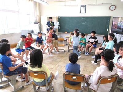外の暑さ指数が高いため、担当の先生の教室に集合し、6年生が計画した室内遊びを楽しみました。