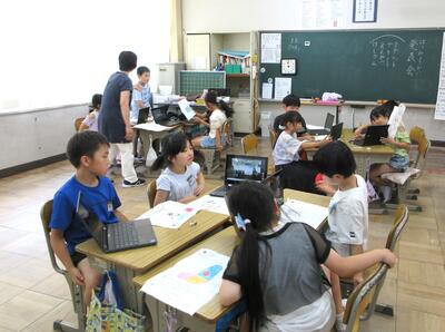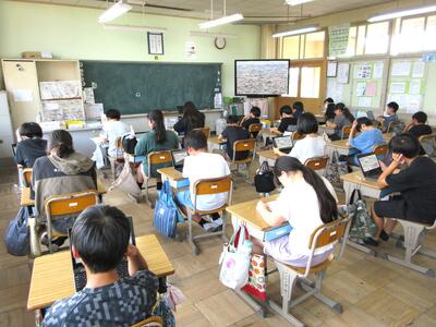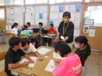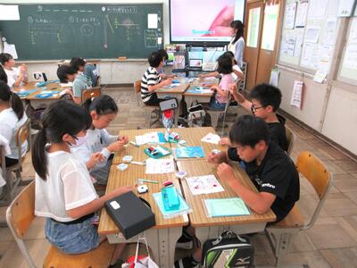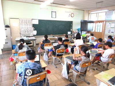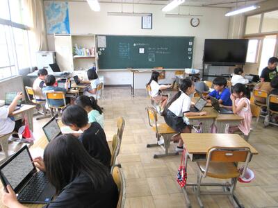 5年生の総合的な学習の時間では、先日の臨海自然教室の活動についてまとめています。「4年生に伝える」という目的をもって取り組んでいました。