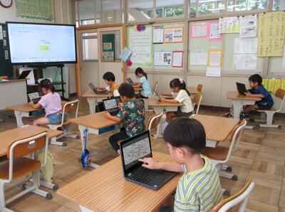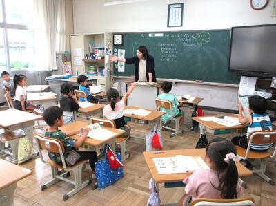 1年生の国語は、ノートに文を書く授業です。この後、書いたことを友達に話します。