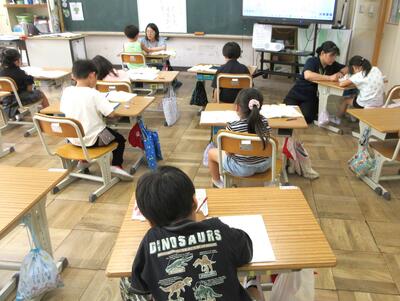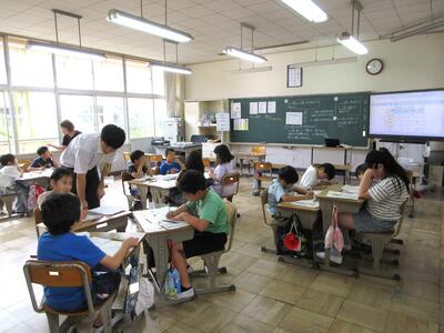 2組では、算数で、夏休み前の復習問題に取り組んでいます。