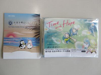 今日は、啓発のために町の更生保護女性会の皆さんが来校され、児童一人一人にポケットティシュ、ばんそうこう等を届けてくださいました。ポケットティシュ、ばんそうこう等は本日配布しました。