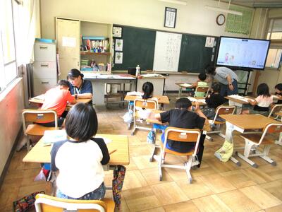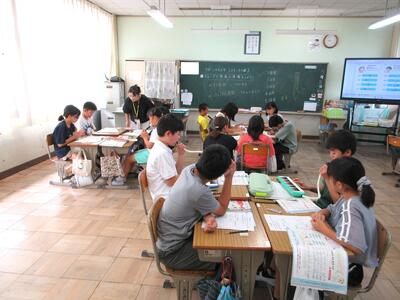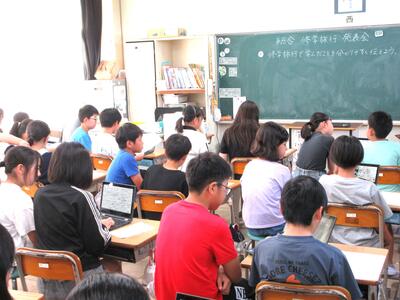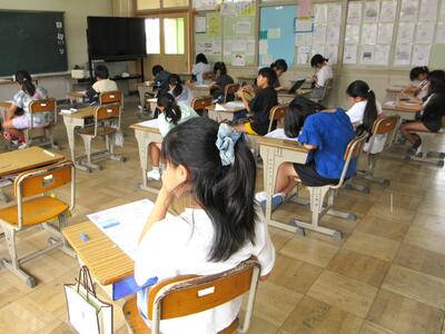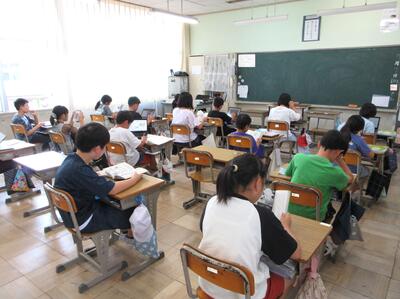 子どもたちは夏休みに入りました。教員は、学力向上に関する校内研修を行いました。