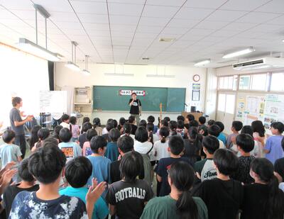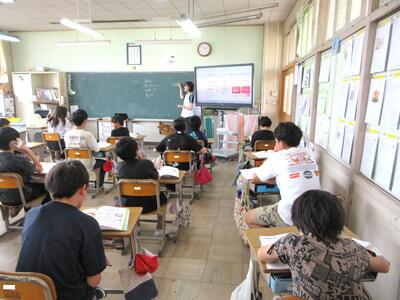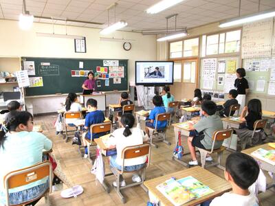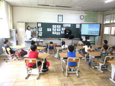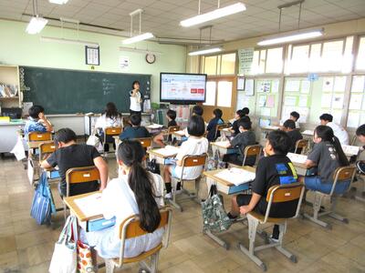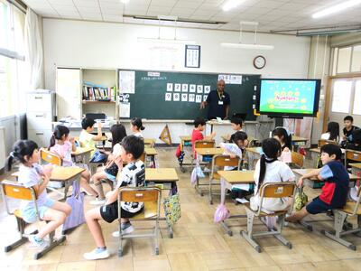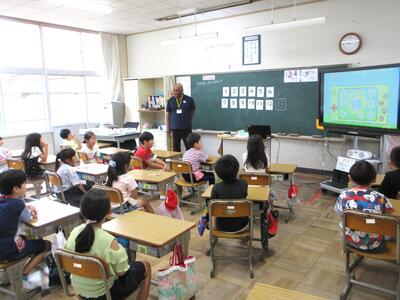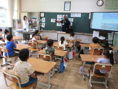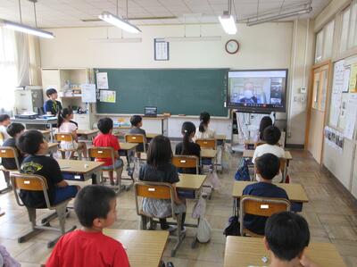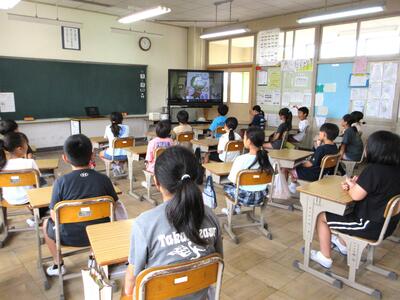 子どもたちは、各教室でとても良い姿勢で真剣に聞いていました。
