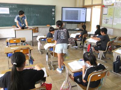 5年生の国語では、教材文の範読を聞いて、内容を確認しています。