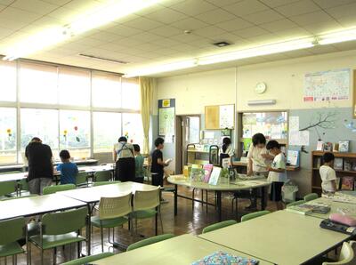参加した子どもたちは、図書ボランティアの皆さんに教えていただきながら、思い思いの白いおばけの飾りを作っていました。「やった。できたよ。」「どこへ飾ろうかな。」など、みんなうれしそうでした。