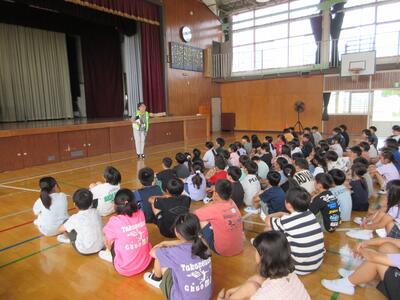 校長・学習指導主任・児童指導主任から、子どもたちに、夏休み中の過ごし方について話しました。(詳しくは、配布しました学校だより「夏休み号」や、学年だより、「夏休みの生活」を親子でご確認ください。)
