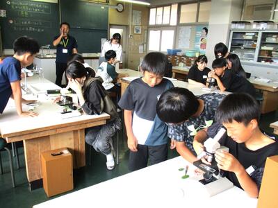 6年生の理科では、顕微鏡を使って、ツユクサの気孔を観察しています。