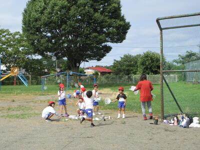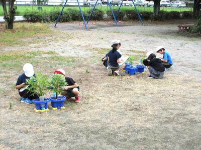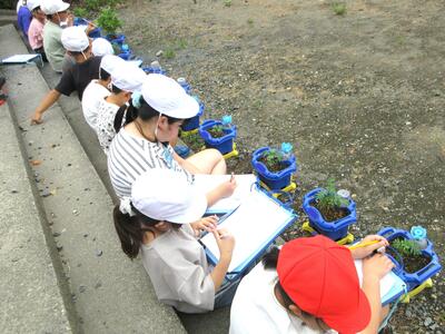 1年生の生活科では、校庭で夏の生き物を探しました。