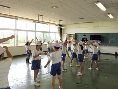 3年生の体育では、表現運動で、音楽に合わせてダンスに取り組んでいます。