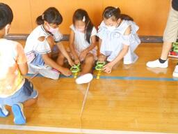 今日の2時間目に、4年生の理科の授業も見ていました。乾電池の働きの学習のまとめで、モーターで動く車を作っていました。分からないところは隣の人に聞くなどして、楽しそうに活動していまいた。